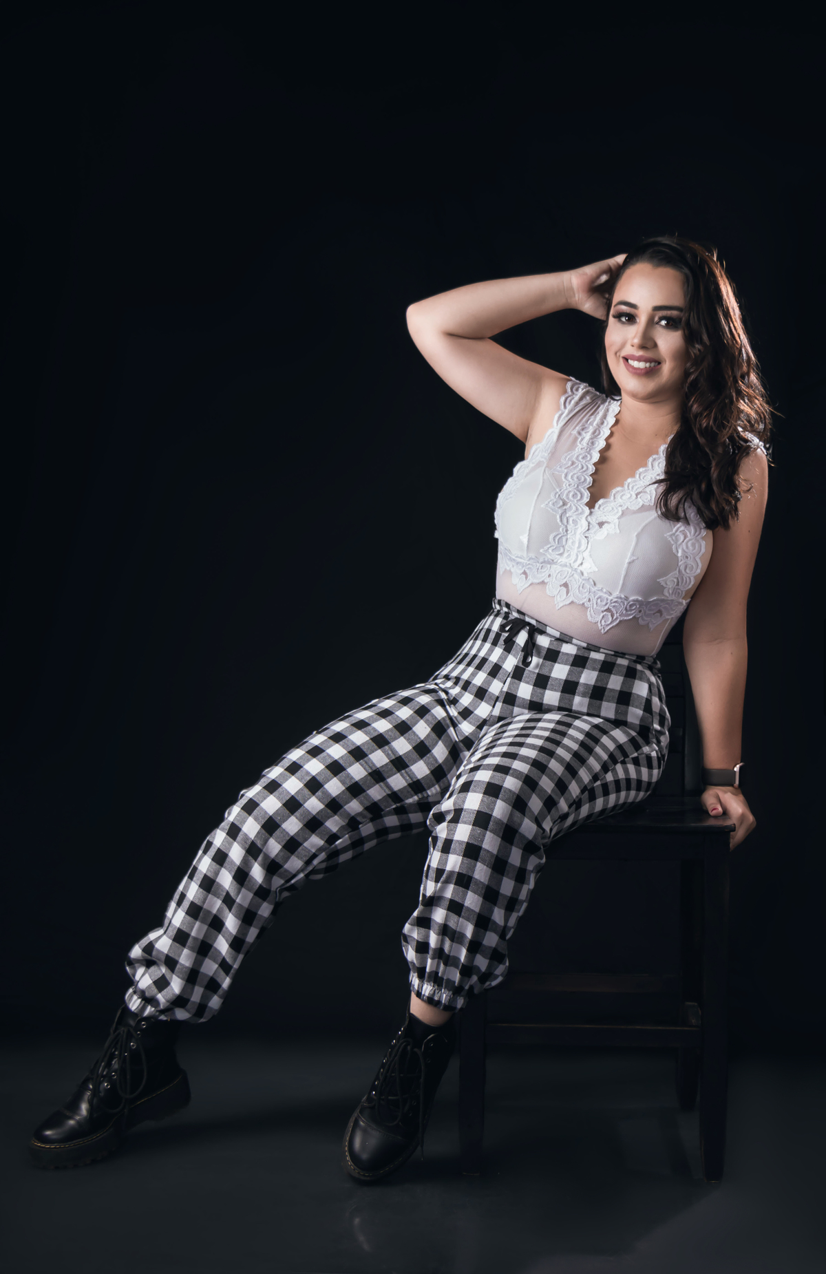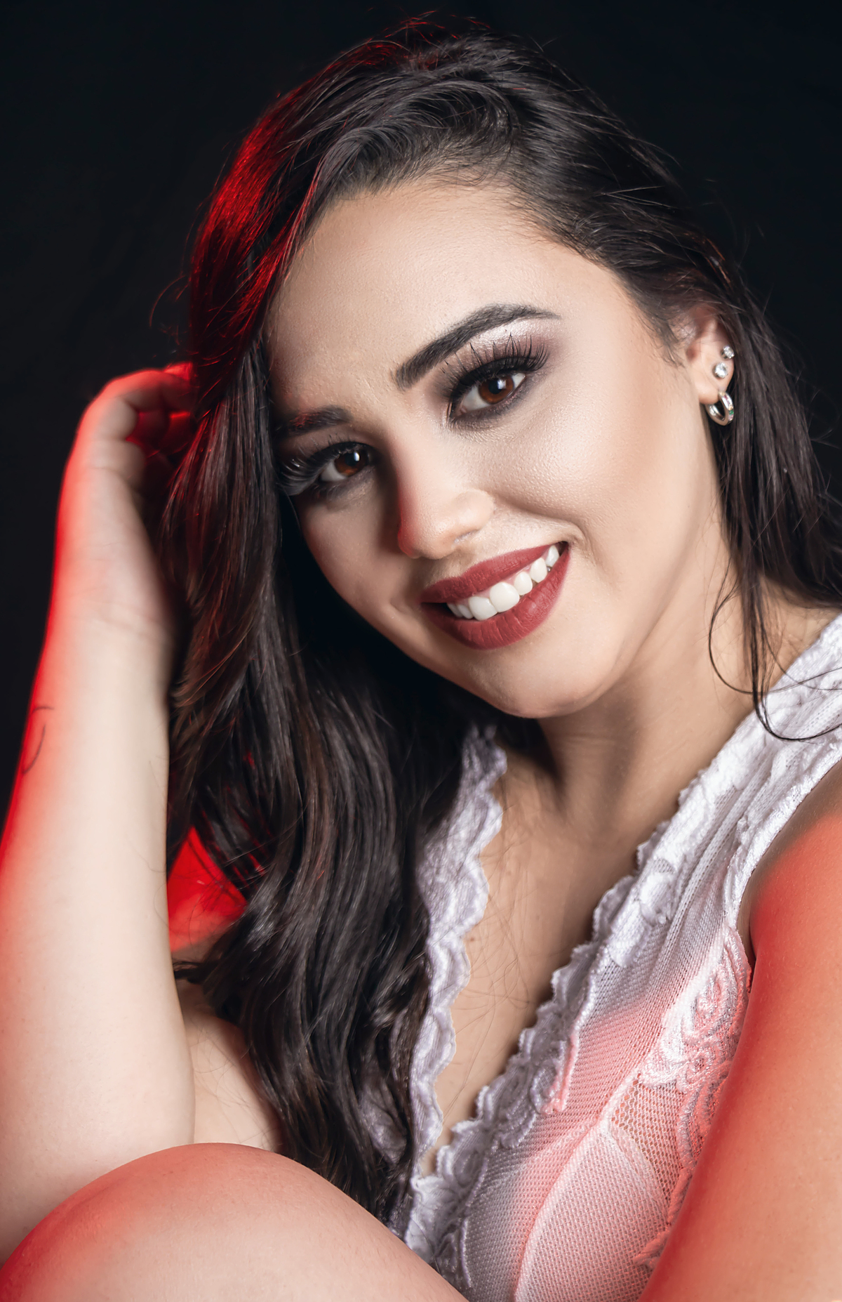 mulher ensaio feminino beleza sorriso foto estúdio Três Corações retrato